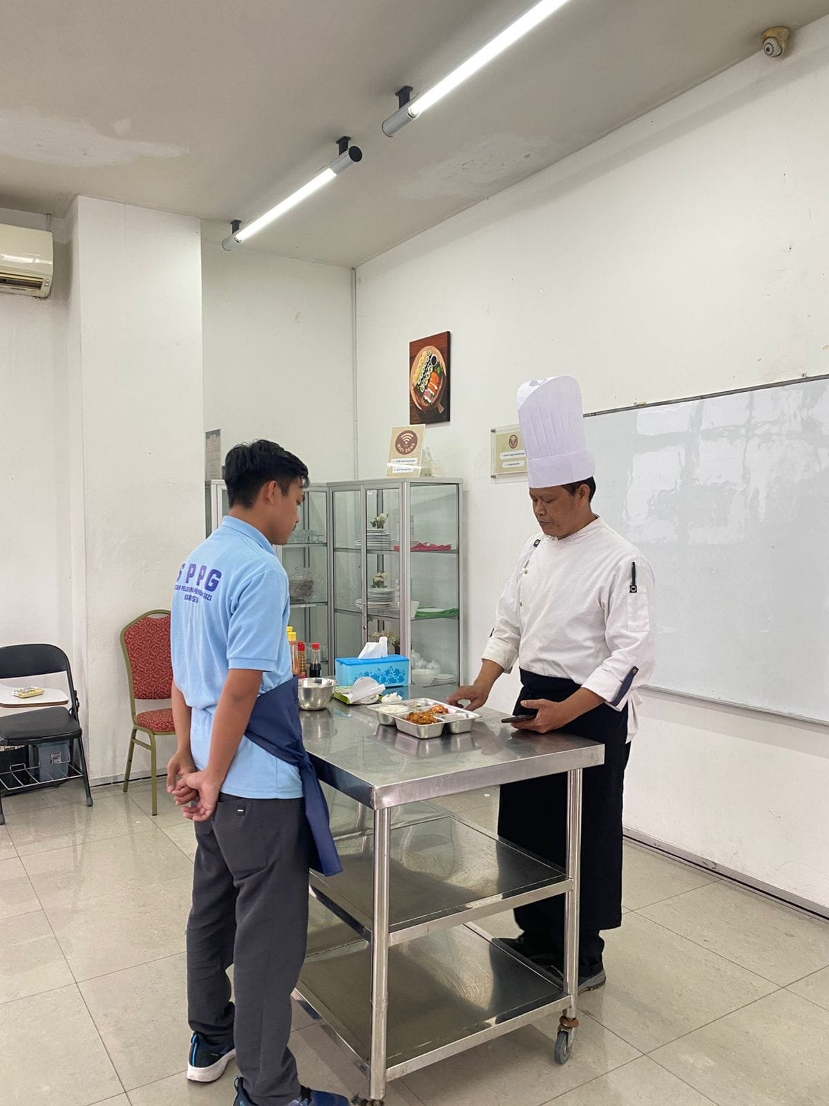 Pelatihan ini menghadirkan Chef Affan, Ketua BPC Bogor Raya dari Indonesian Chef Association (ICA), sebagai pemateri utama yang memberikan pembekalan keterampilan teknis serta standar kerja profesional di dapur industri.