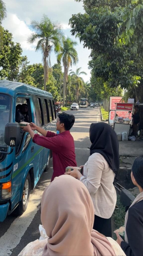 Memasuki waktu menjelang berbuka puasa, suasana kegiatan berlanjut dengan aksi pembagian takjil gratis kepada pengendara dan masyarakat yang melintas di sekitar pintu utama kampus. Mahasiswa STP Bogor turut terlibat langsung dalam kegiatan ini sebagai bagian dari praktik pelayanan dan kepedulian sosial.